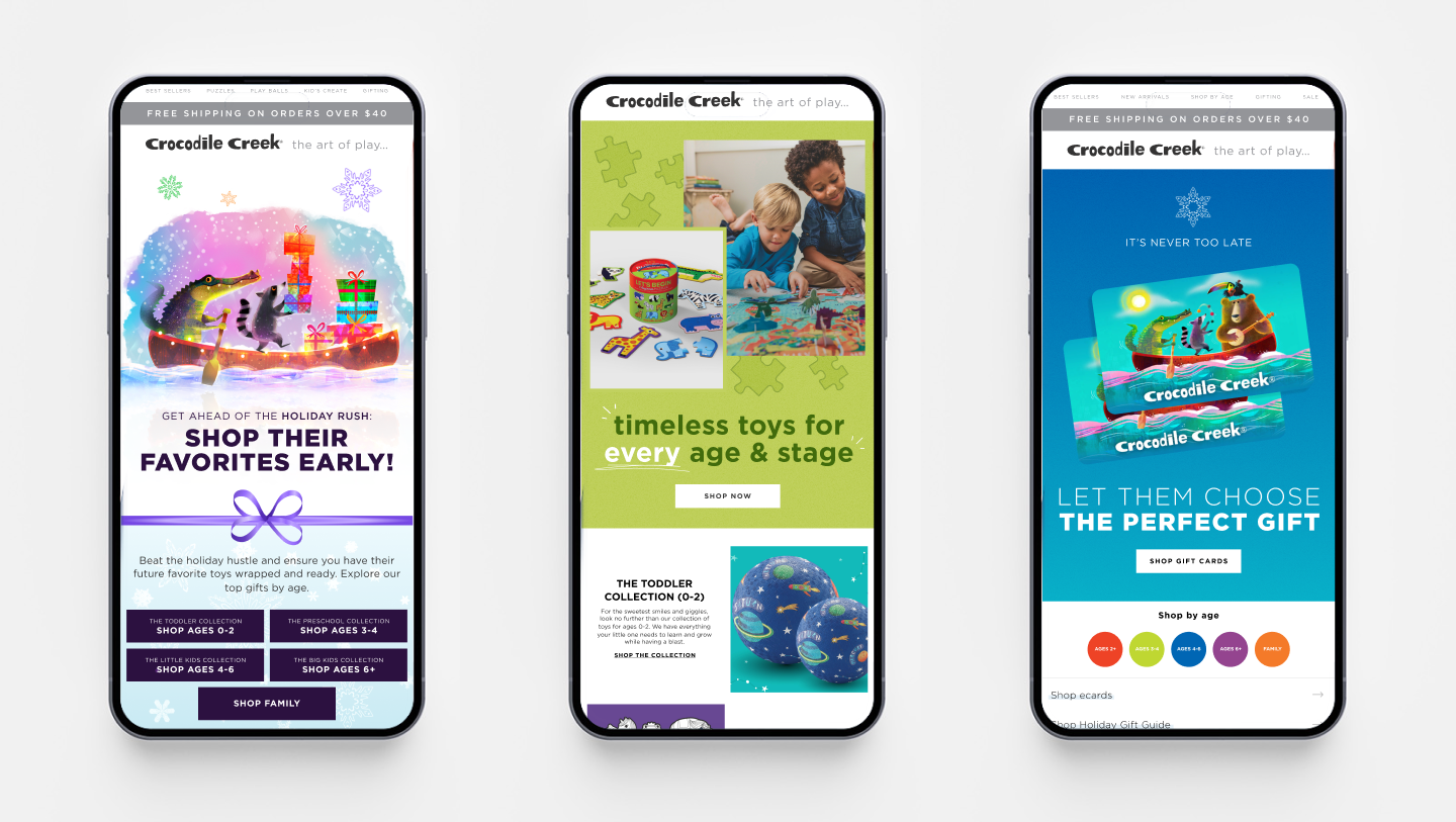 After running paid social and paid search efforts for the toy brand, 1r Agency partnered with Crocodile Creek to activate a new channel to fuel holistic digital marketing growth. The agency owned the entire activation process which included the migration to Klaviyo, calendar planning, copywriting, and creative execution. Learn how 1r grew the brand’s subscriber base through retention strategies and acquisition.